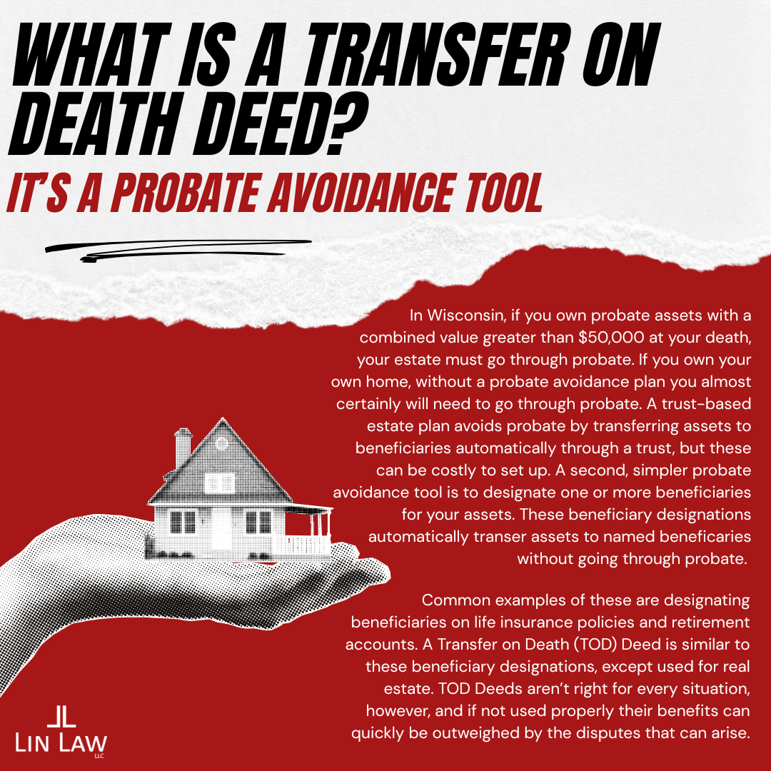 For many Wisconsin families, keeping the home, cottage, or any other real estate in the family is vital, preserving ownership across generations. Many also desire to spare their loved ones the need to go through probate, which often adds time and costs to administering an estate. Probate is the public, court-supervised process used to pay a deceased individual’s debts, and distribute any remaining assets to the individual’s heirs. Without a proper plan, whether these goals will be reached is a gamble. Depending on your circumstances, a Transfer on Death (TOD) Deed might be a simple, cost-efficient tool to accomplish these goals.